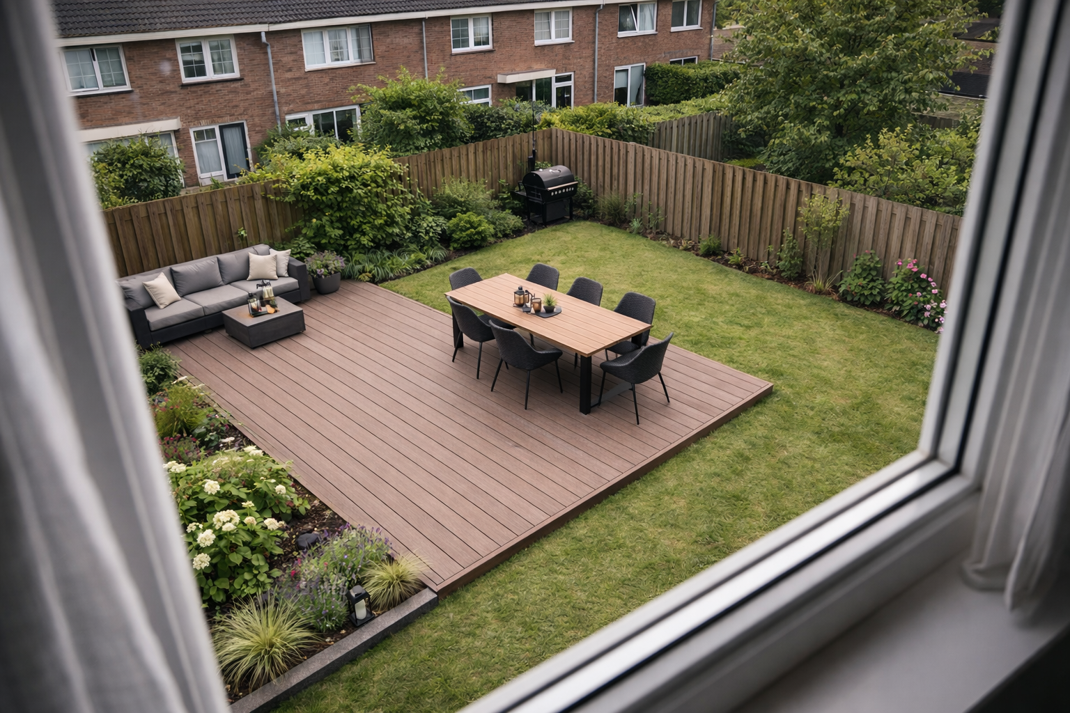 Composiet werkt nauwelijks in vergelijking met hout. Geen kromtrekkende planken, geen scheuren en geen splinters. Uw terras blijft strak en stabiel liggen.
